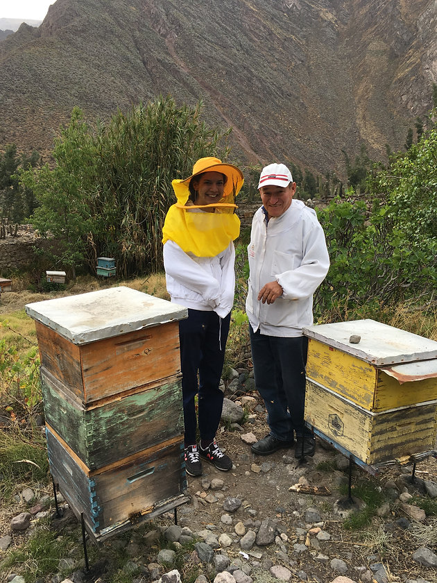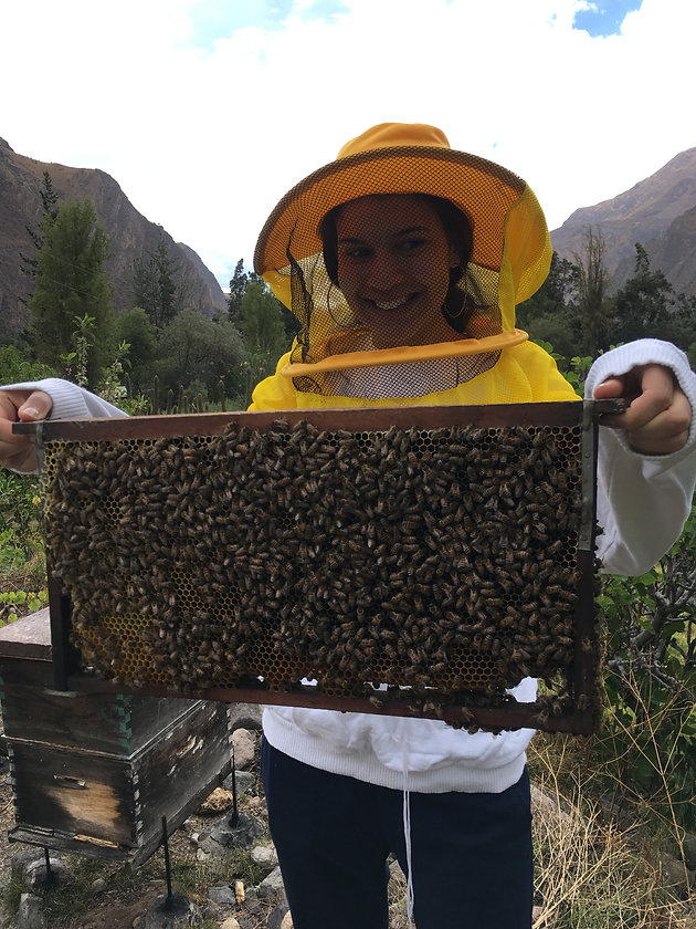 Marita, founder of Volunteers Peru, is from Tomepampa, and she has family members who live there, one of whom—Lucho—has several beehives in his backyard, next to his grapevines and the avocado plants. Two weeks ago, Megan—Project Manager for Volunteers Peru—and I got to take a trip to Tomepampa to help our new volunteers get settled in. During the few days we spent in Tomepampa’s winding streets and tiny produce shops, we got to make some new bee friends.